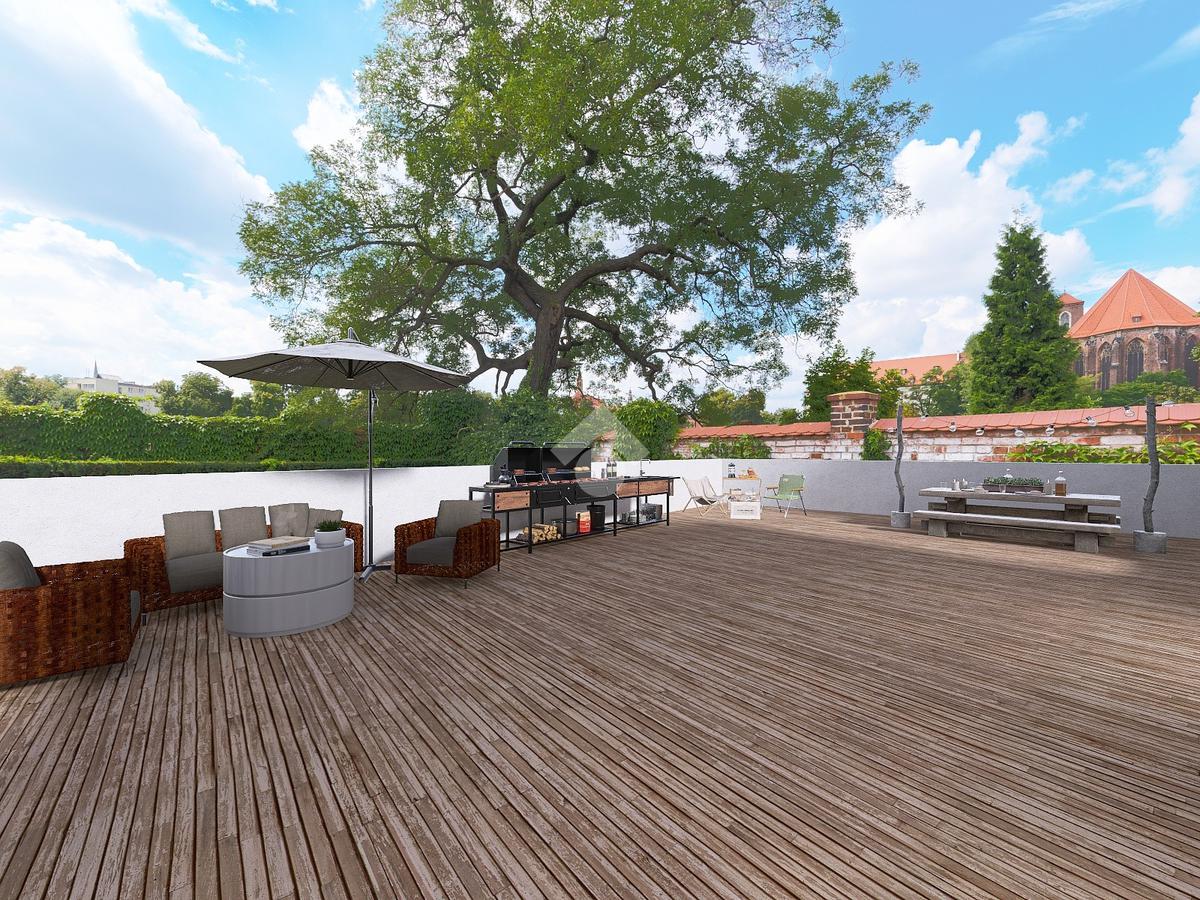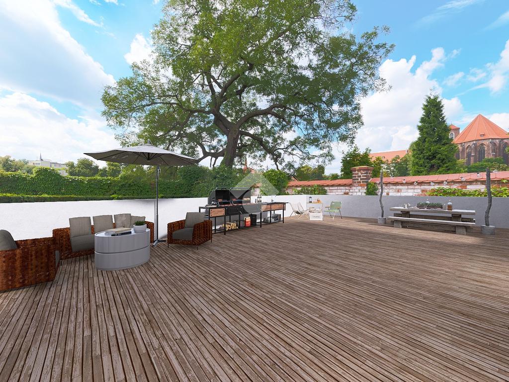 L'abitazione è composta da una zona giorno con accesso ad un terrazzo di circa 74 mq