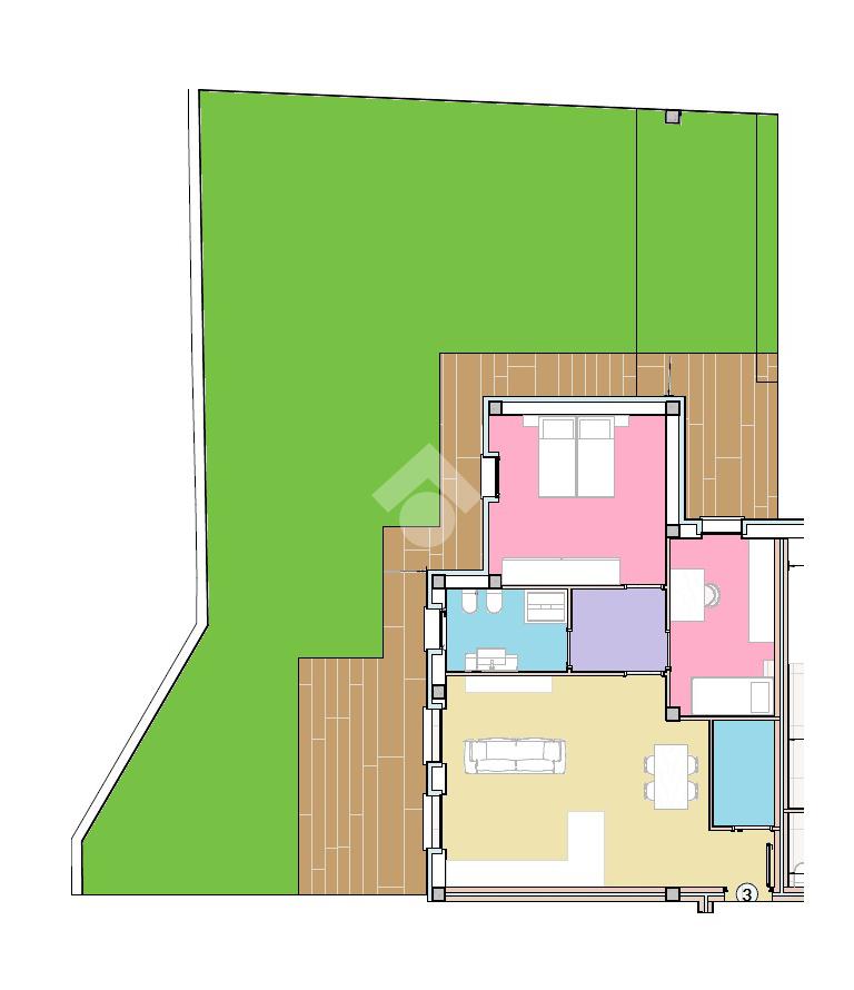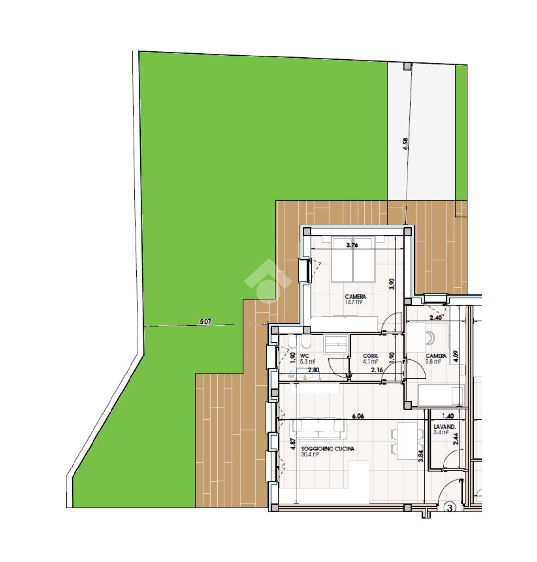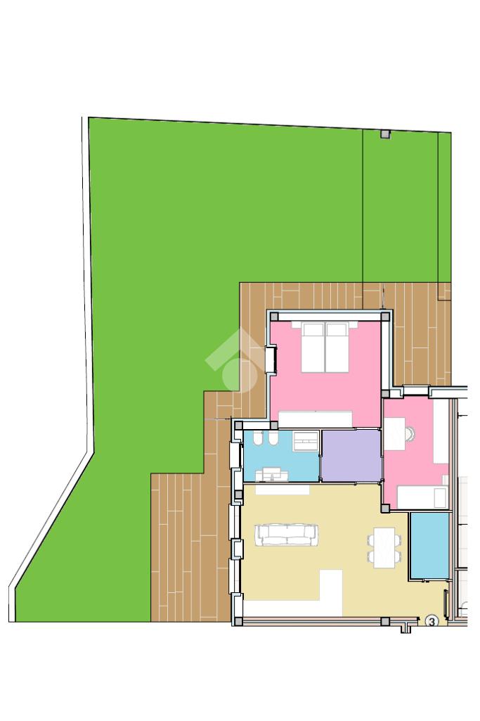 Situato al piano terra, l'appartamento si estende su una superficie di circa 100 mq e offre un'accogliente zona giorno con accesso diretto al giardino privato di 155 mq. , ideale per momenti di relax all'aperto.