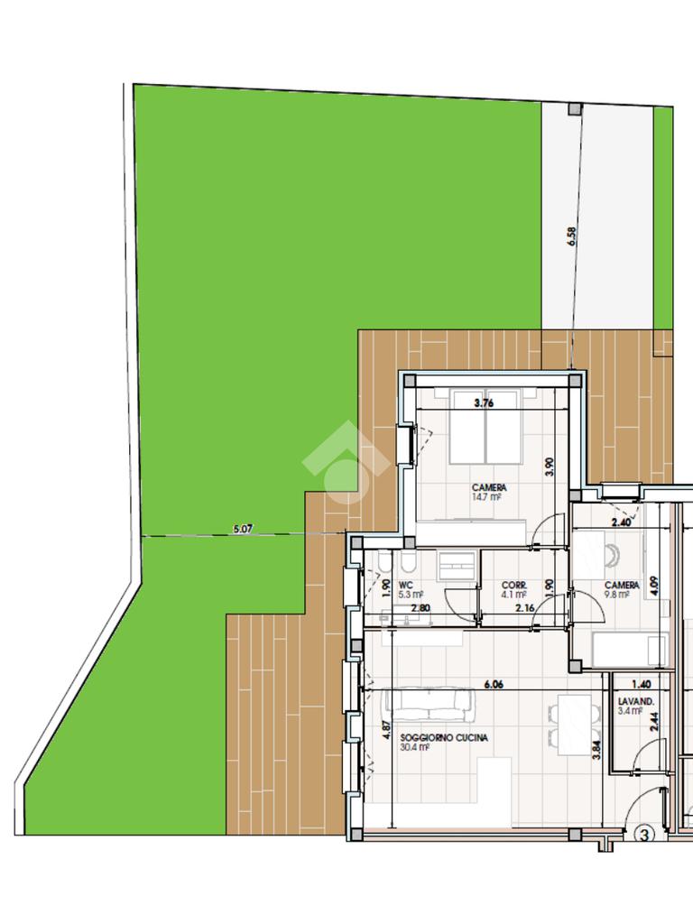 3 di 3 con ascensore (Piano terra con giardino)