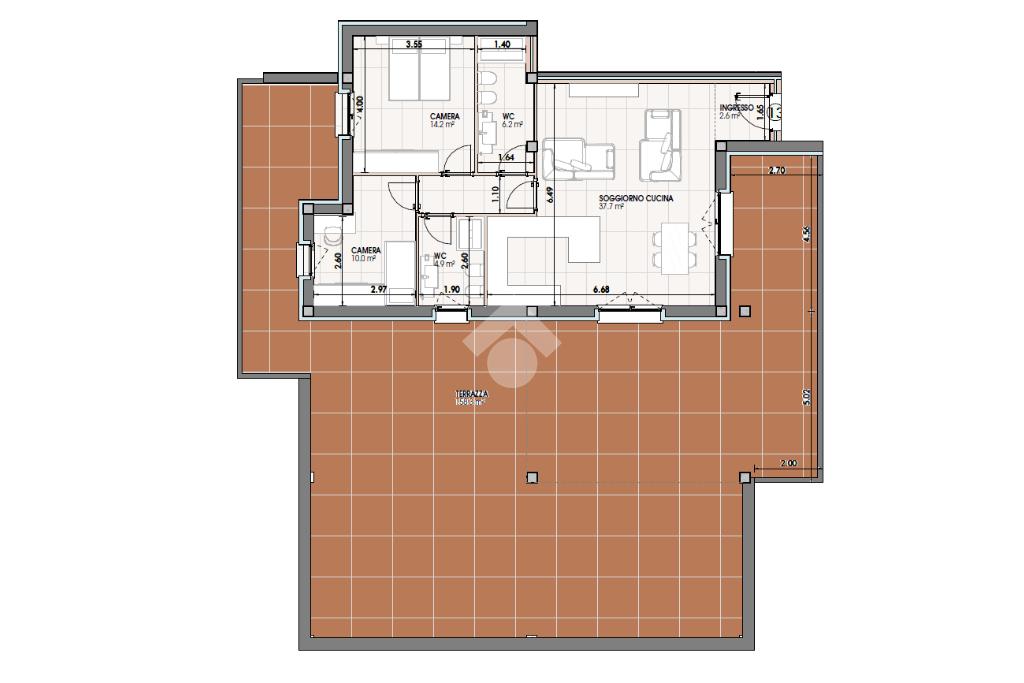L'immobile è di 95 mq ed offre un'ampia zona giorno di circa 40 mq. che si apre su un terrazzo di circa 160 mq, ideale per momenti di relax all'aperto.