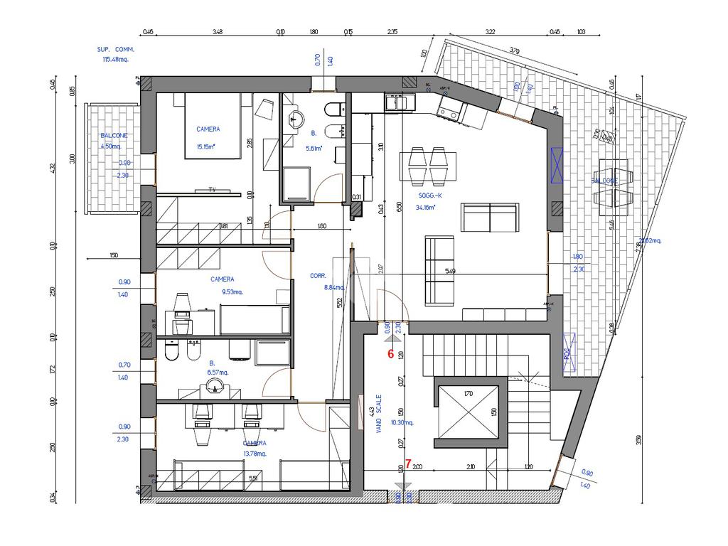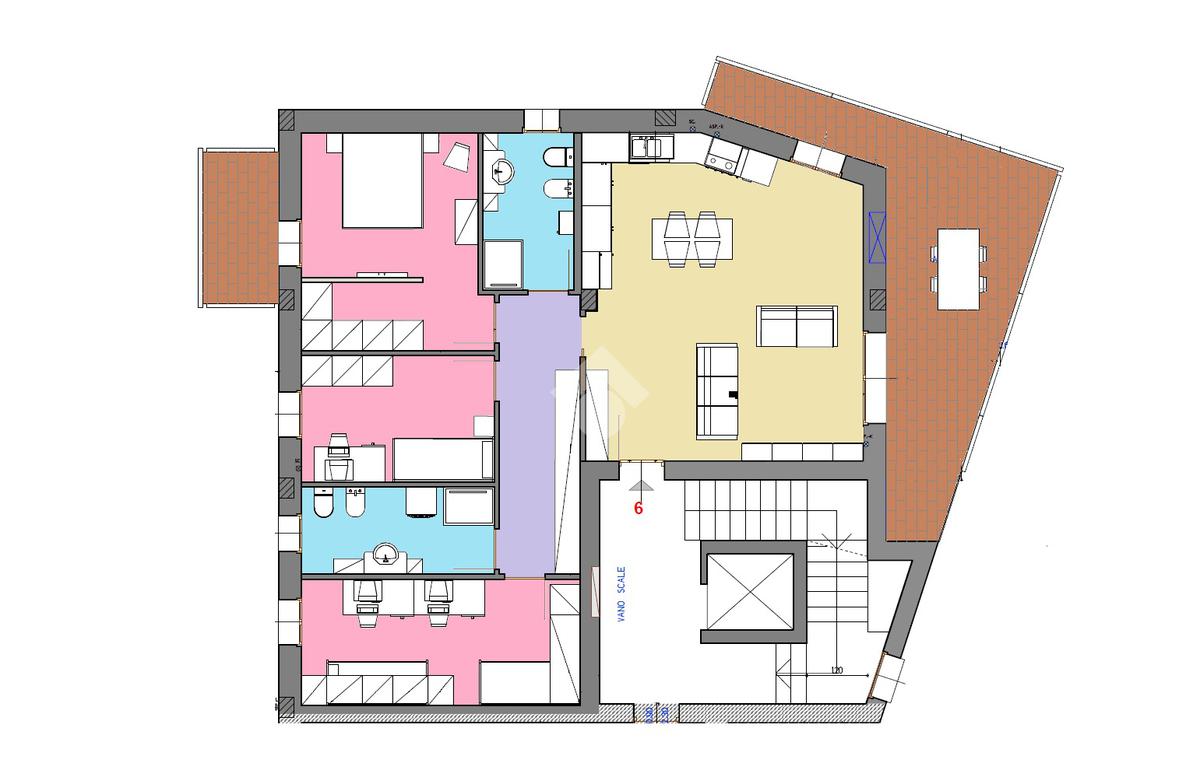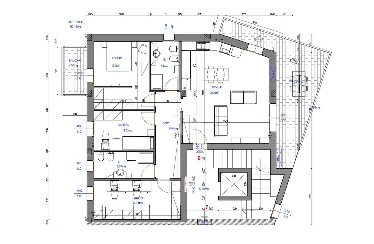 L'appartamento di circa 115 mq, offre un'ampia e moderna distribuzione degli spazi, con cinque locali ben organizzati.