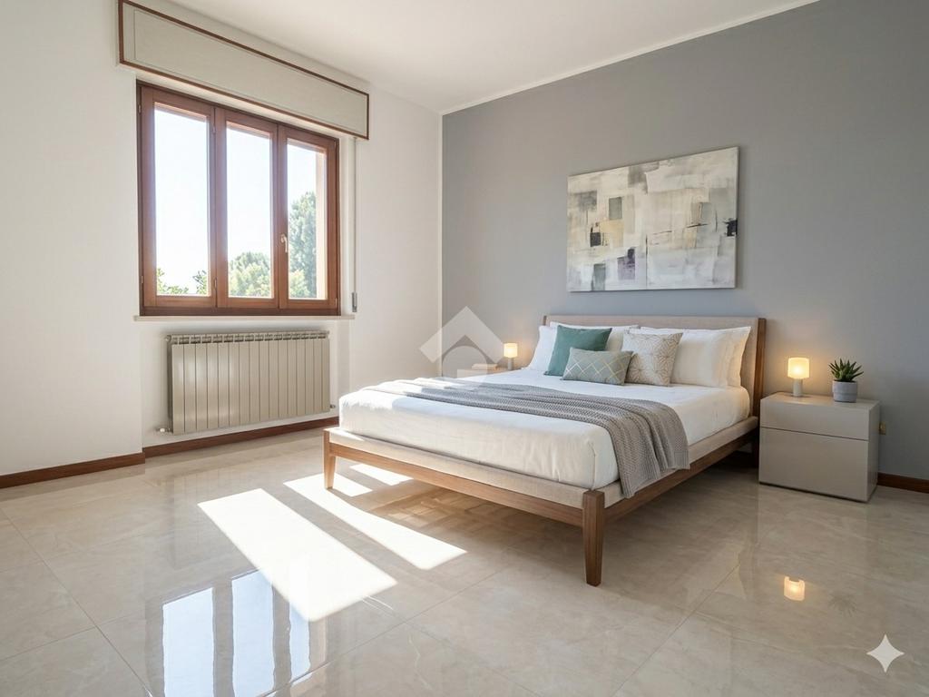 Nella zona notte bagno con finestra e ampia camera matrimoniale.