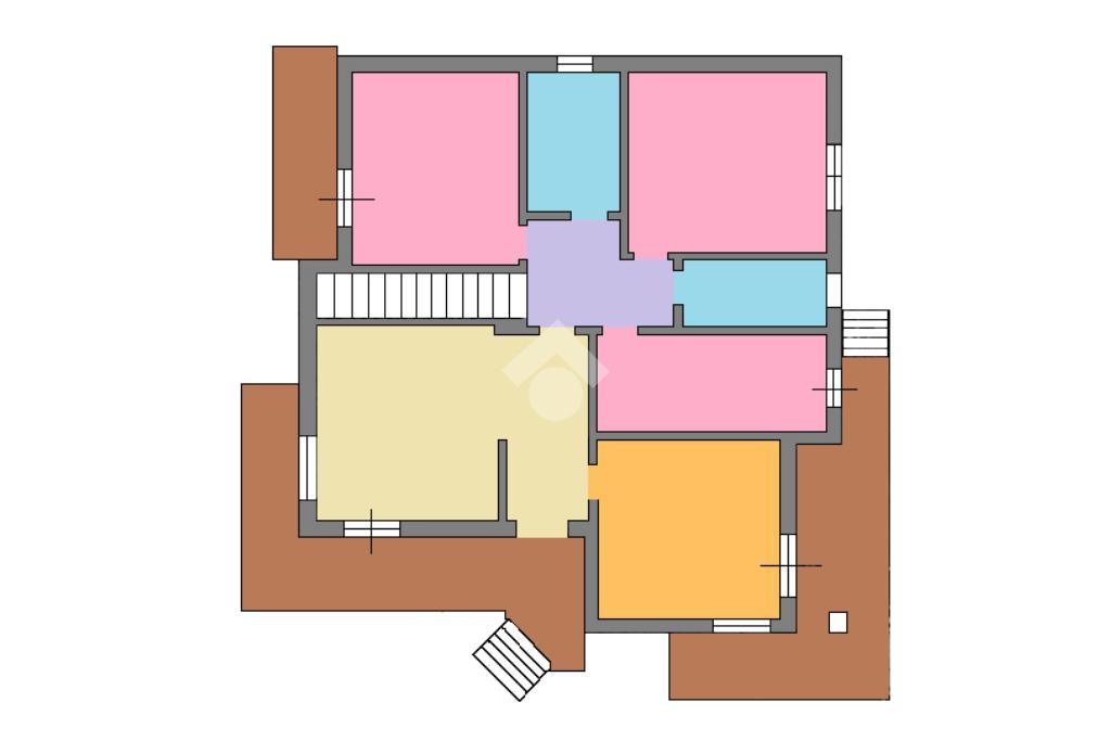 La parte ad abitazione è disposta tutta su un unico piano rialzato, oltre un piano scantinato con cantina, centrale termica, lavanderia e autorimessa.