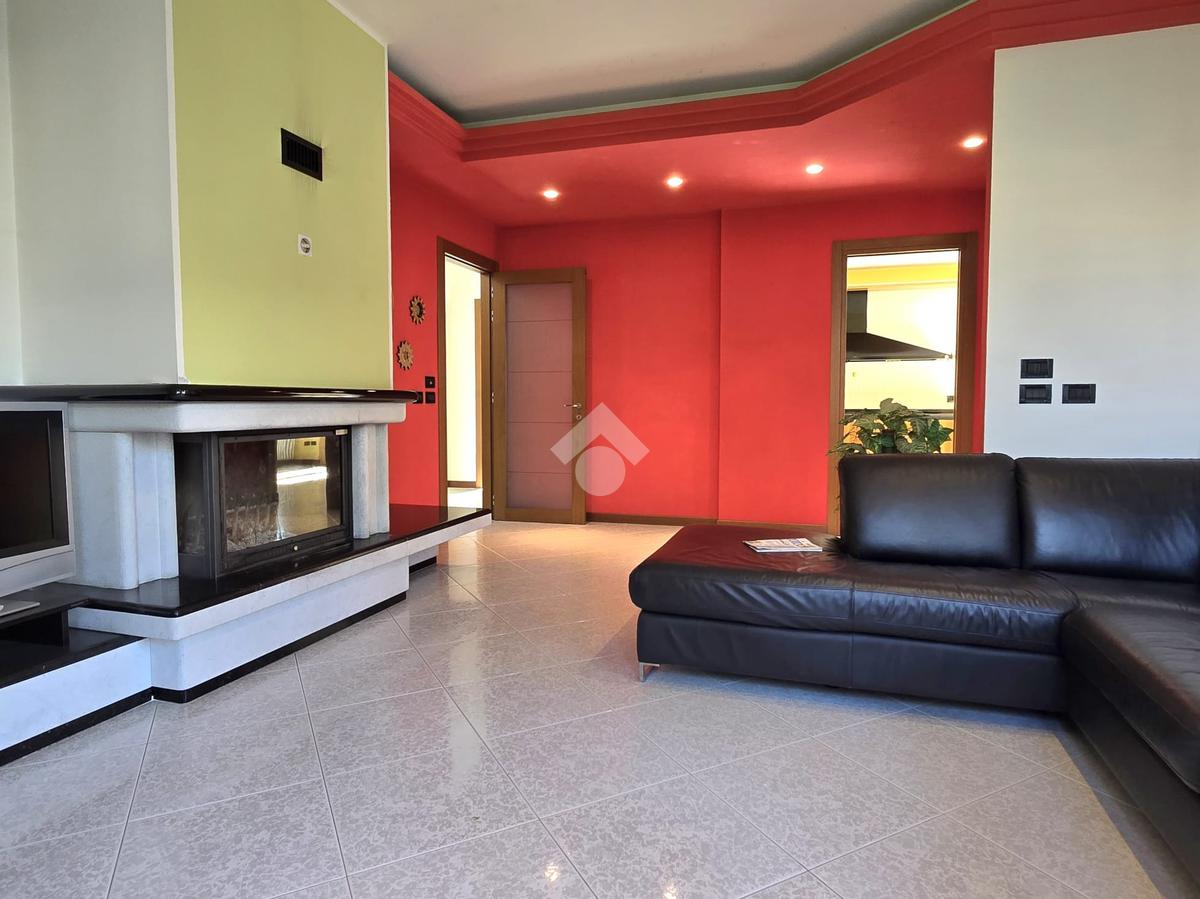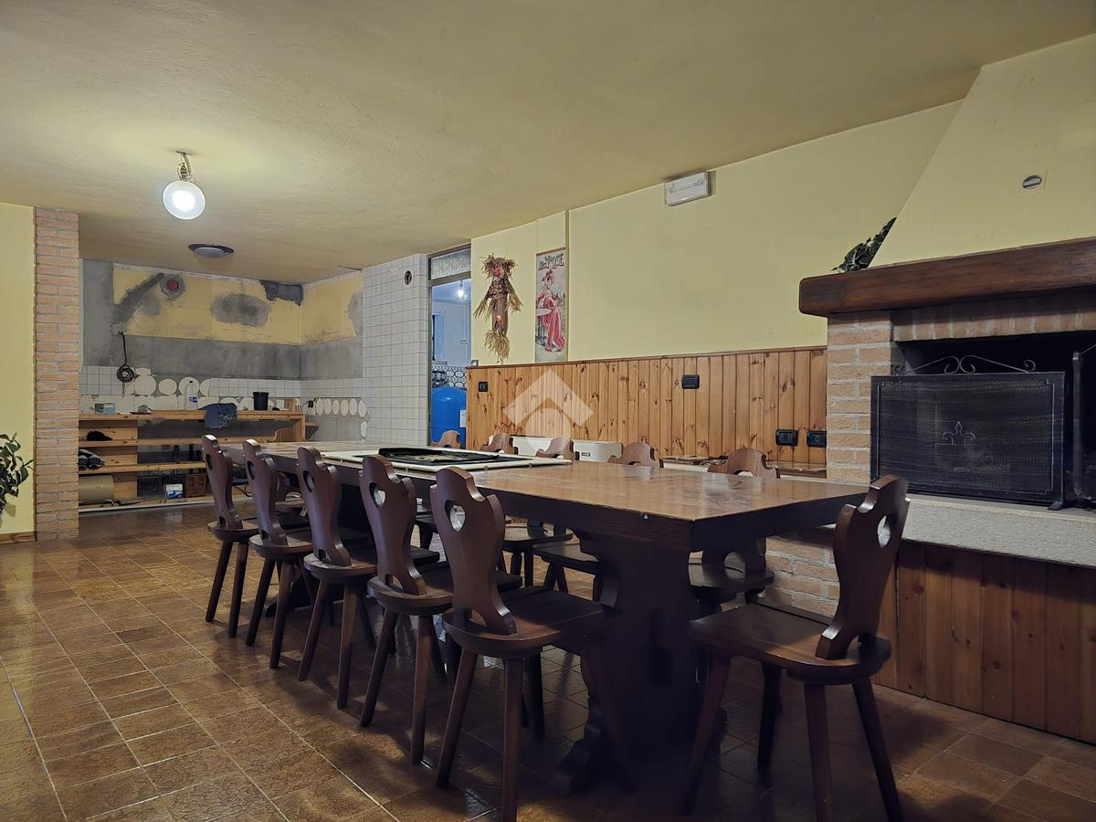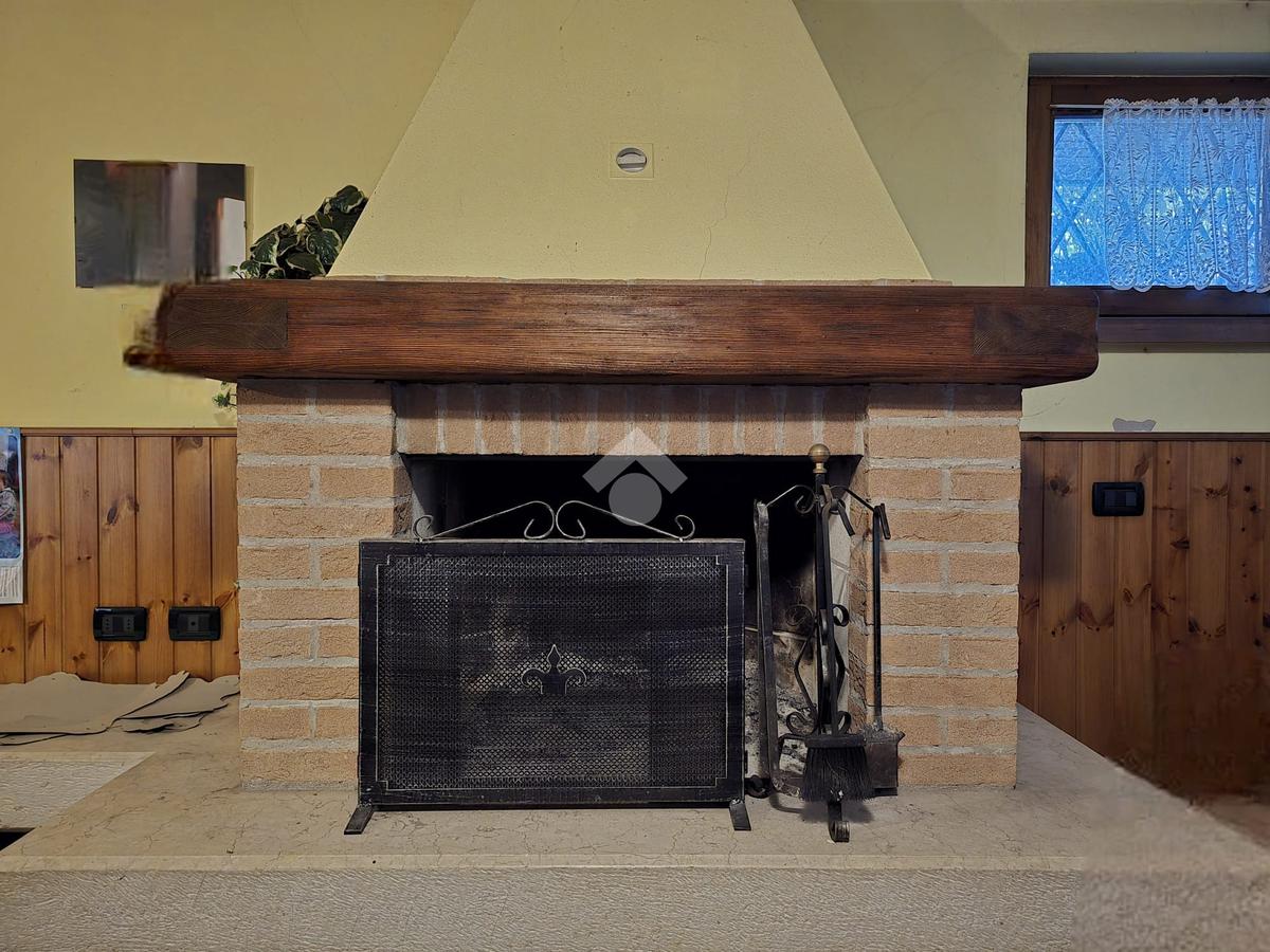 L'ingresso accogliente conduce a un ampio soggiorno con camino, perfetto per momenti di relax e convivialità.