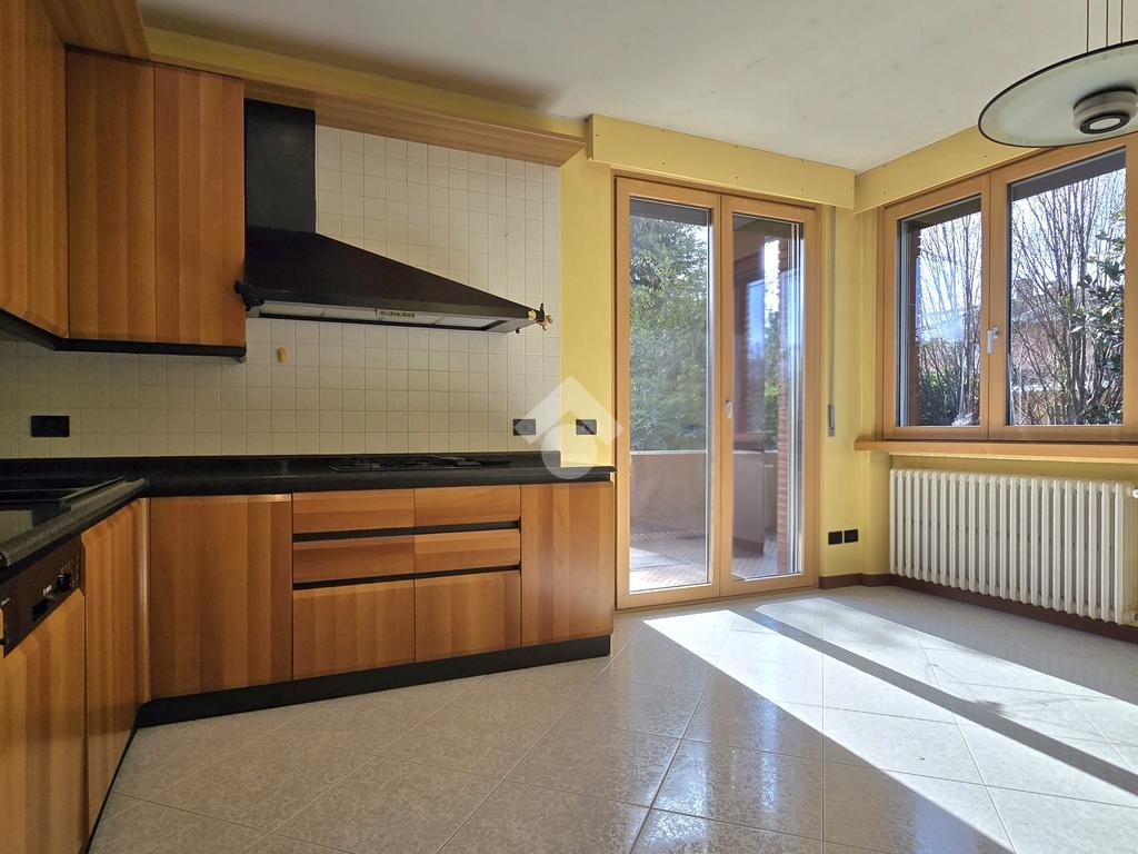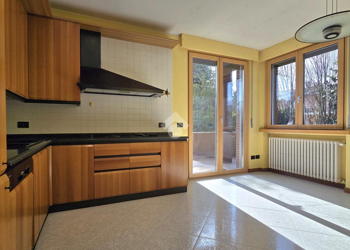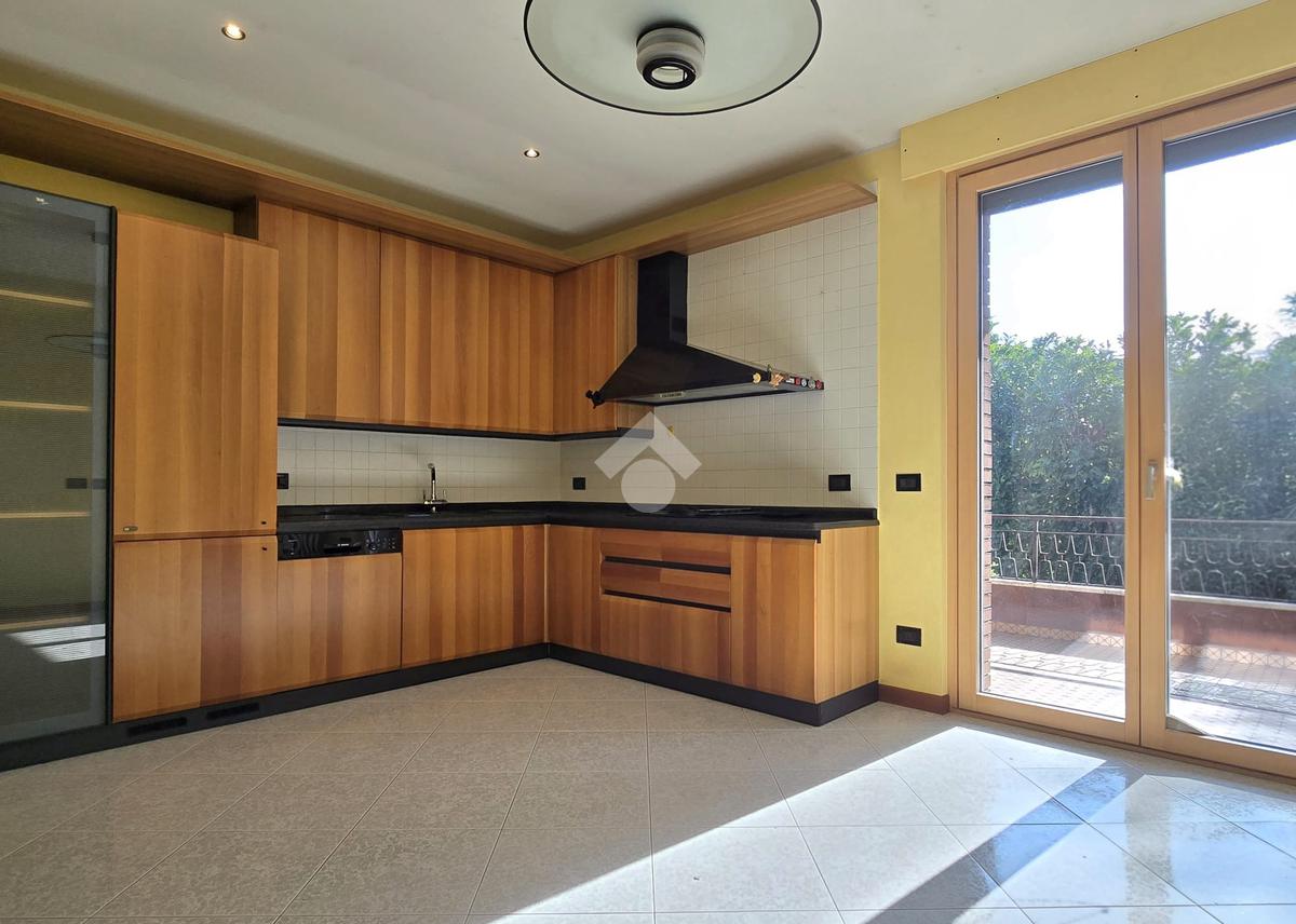 La cucina è spaziosa e funzionale con un terrazzo a disposizione.