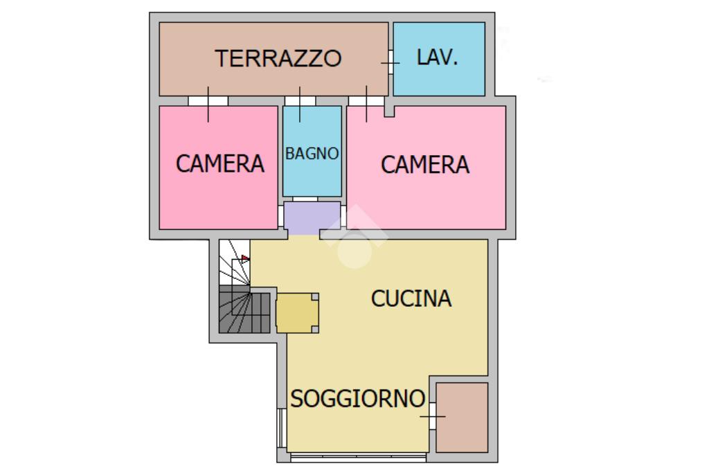 Soggiorno e cucina open space, con angolo living verandato e luminoso, bagno con finestra recentemente rimodernato, due camere di cui una matrimoniale e una singola, entrambe con accesso al terrazzino posteriore dove è presente un piccolo locale adibito a lavanderia.