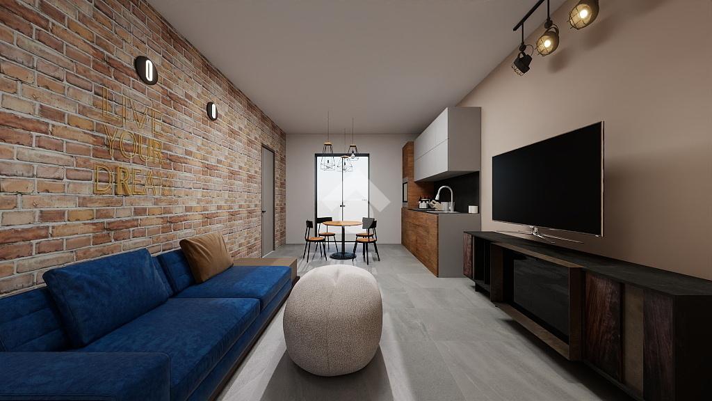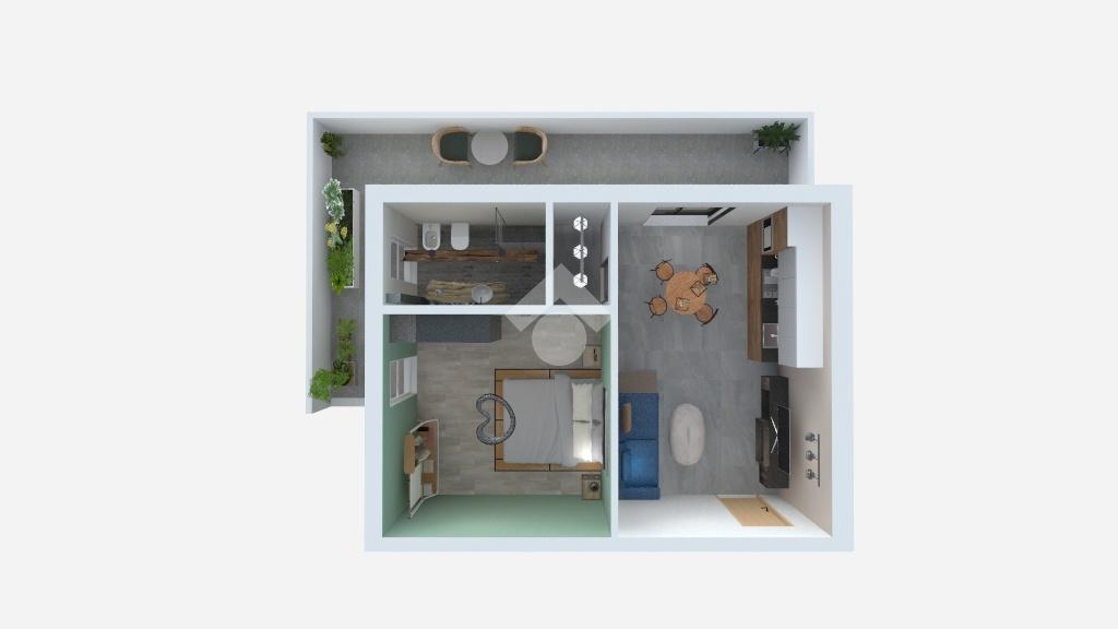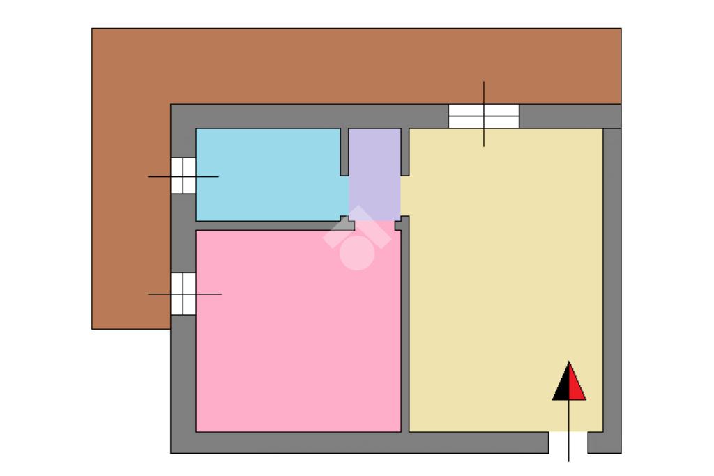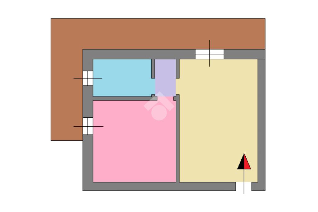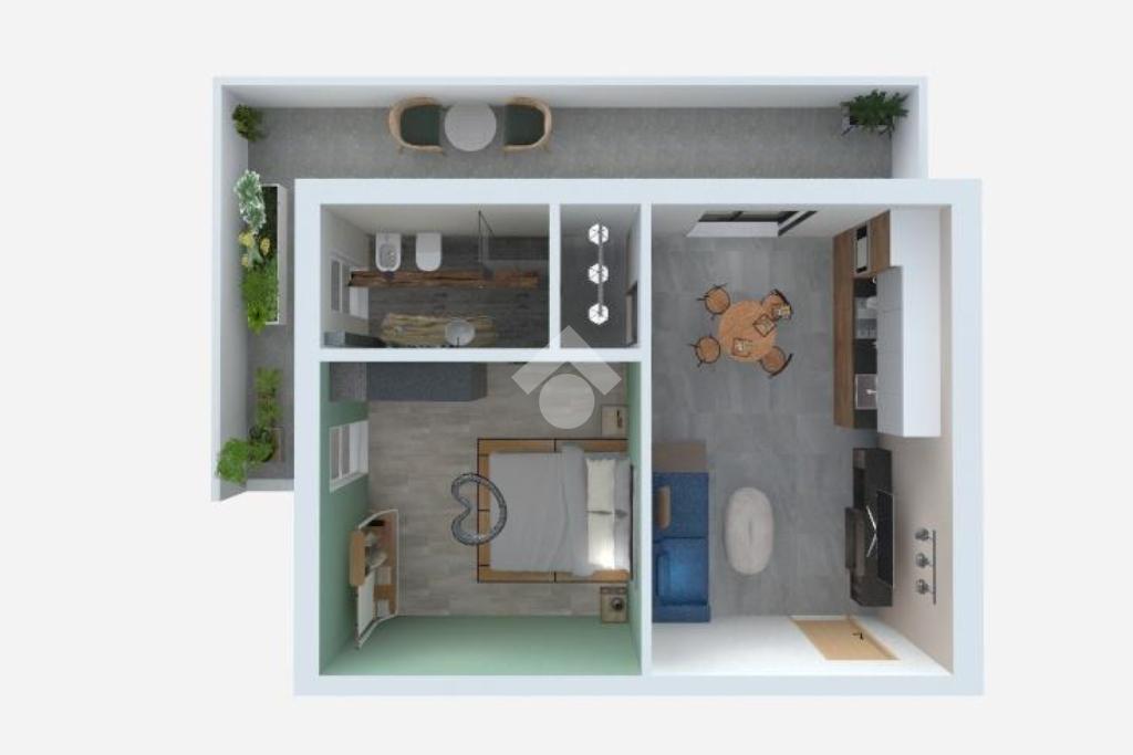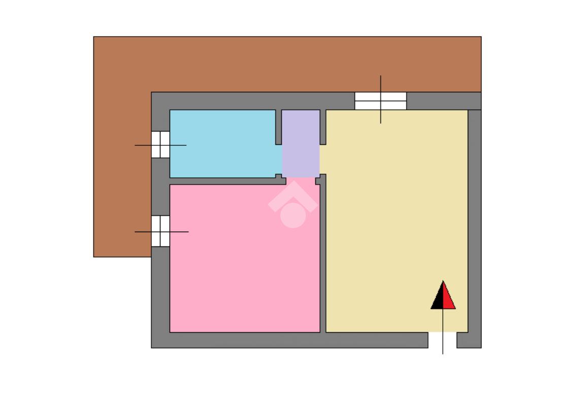 L'abitazione comprende un luminoso soggiorno, una camera da letto matrimoniale, un bagno con finestra ed un ripostiglio.